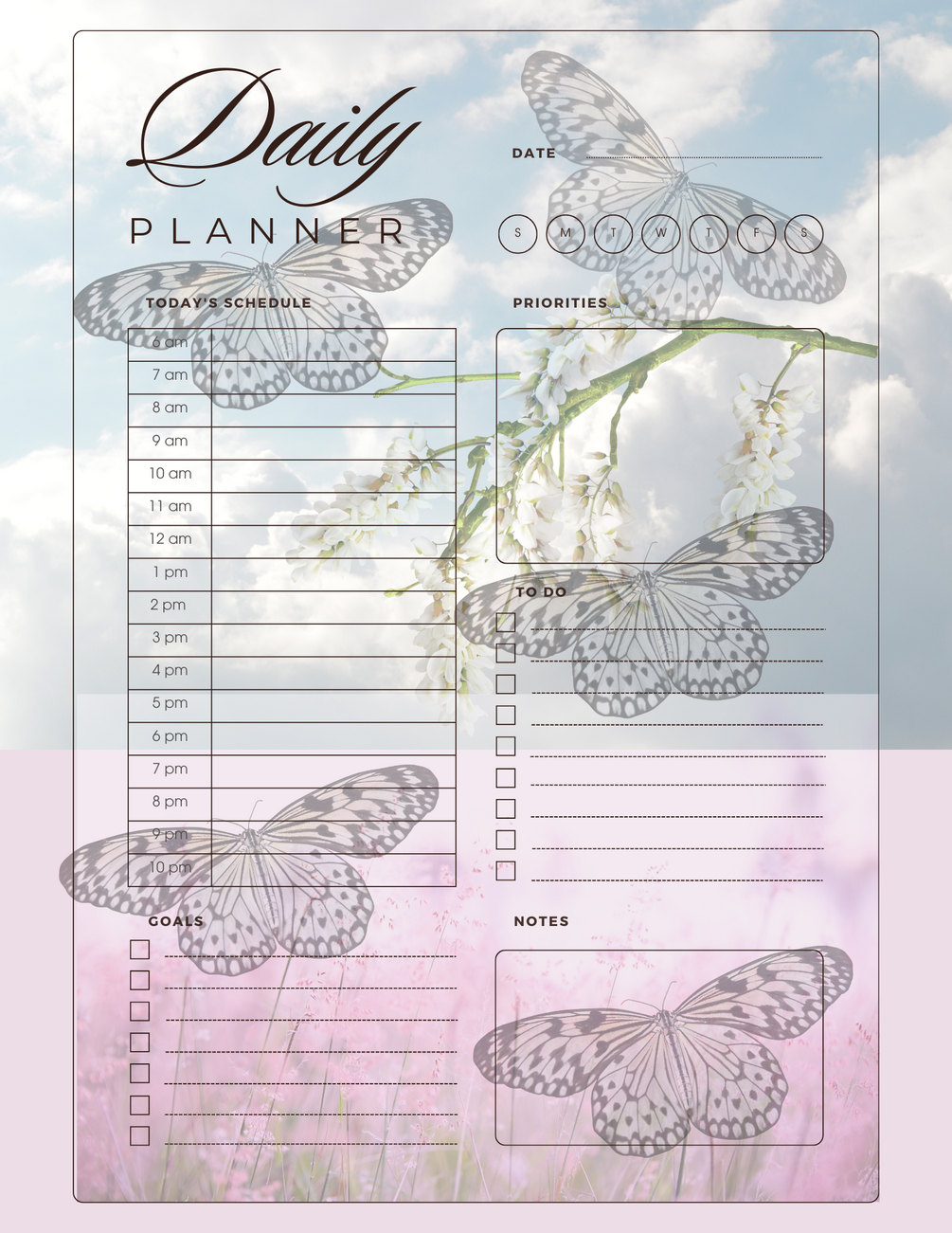 Butterfly Daily Planner but say if you don't like the color you could email or dm me on tiktok or instagram @kevii.1k to tell me how you want it different please don't forget to rate and add some reviews if possible !!!! Thank you for all yall support